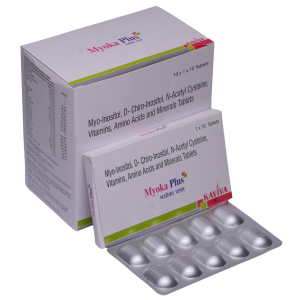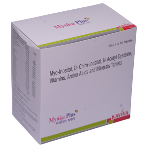 Myoka Plus Tablet is a scientifically formulated nutraceutical designed for the management of Polycystic Ovary Syndrome (PCOS). It contains Myo-Inositol (1 g) and D-Chiro Inositol (25 mg) in an evidence-based ratio, along with other supportive nutrients that play a key role in insulin signaling, ovarian function, and hormonal regulation.